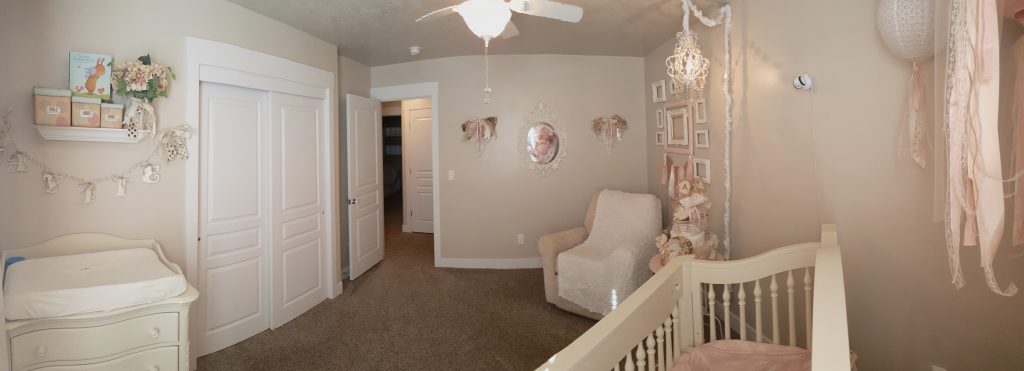 I was so excited to find out I was having a baby girl a few years ago. I can’t believe that was almost 3 years ago! Once we found out , my next mission was creating a super girly nursery. I knew I wanted lots of pink, white, and cream. My amazing Mother-In-Law made the cutest bedding. She can sew like nobodies business. I was able to pick out my fabric which was the base for the rest of the nursery decor. I picked a pastel pink colored fabric for the main print that had some damask throughout. I also picked coordinating trim and cream fabric to go with it. She also sewed the curtains to match the bedding. Next, I wanted a ceiling fan but also a chandelier. This was a BIG DILEMMA. I even thought , at one point, about doing a chandelier fan. Have you heard of these? It’s a ceiling fan but the light kit on it is a chandelier. Because our ceiling was only 8 feet tall upstairs, I thought the chandelier fan would hang down too low in the room. My alternate solution was to use a plug-in chandelier, like a lamp. In the picture, you can see it over the cute table where the diaper cake is sitting. I put a cord cover from Pier 1 Imports to cover the chain. The frame collage, on the wall by the rocking chair, came from my Mom’s collection she has had for years. I spray painted (I’ll have another post about my favorite spray paint and technique) them to match the decor. The big ornate frame between the candlesticks is from IKEA. I especially love the cute newspaper bows on each candlestick holder. My Mother-In-Law made them for my baby shower (along with that diaper cake) and I wanted to use them in the nursery too.