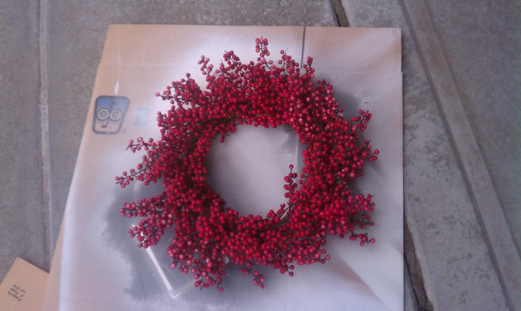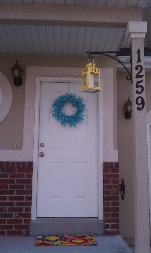 Today I’m throwing it way back to our first townhouse we bought. I got this red berry wreath from Thai Pain Trading and I just loved it, until I didn’t. All of the sudden the red just was not working for me. I had a lot of red in my house when we first got married. After a few years, I started to add more bright fun colors. This is where the wreath update came into play.