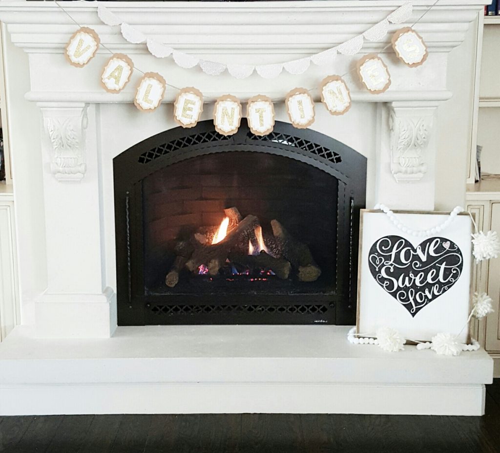 I actually wanted to decorate for Valentines. I had so many creative ideas about what I wanted to do for Valentines. This is probably because we are living in a temporary home while we build our house. I didn’t really decorate for Christmas because we were at families houses to enjoy all of their decor. Not having my own house to decorate is making me itch to get into our house this summer and get to decorating. So after making all those cute Valentines garlands from Michaels; I put together a small little Valentines area in our temporary home.