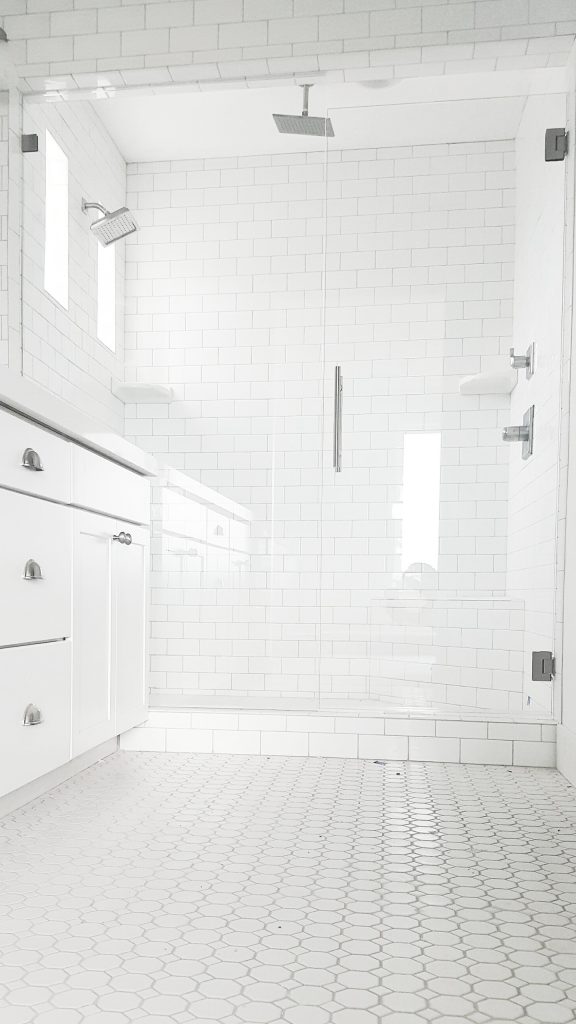 The master bathroom is about done as well. The rain shower head is another favorite of mine. It will get plenty of use! I am digging all the subway tile. I think the grout turned out perfect too.