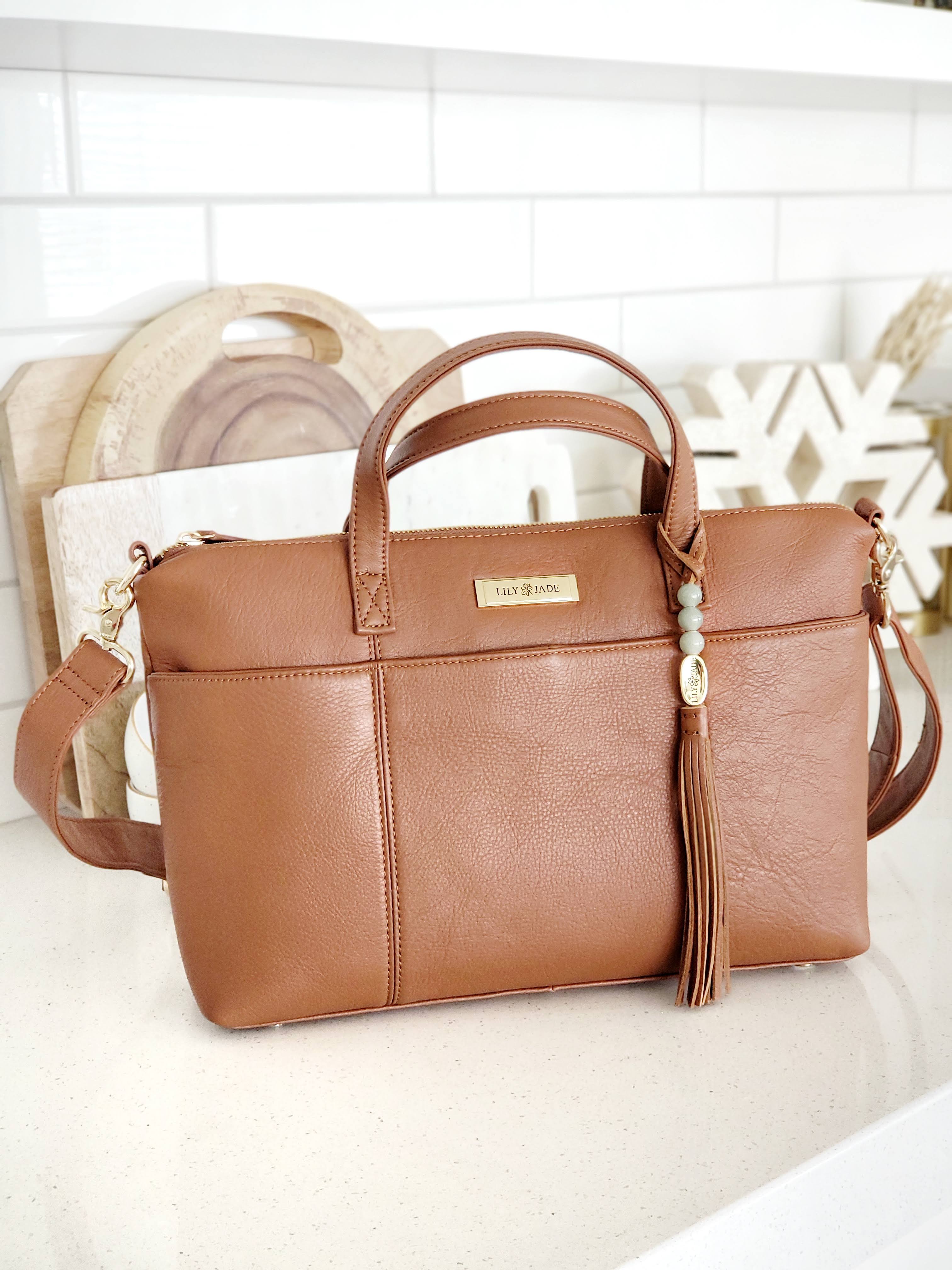 I get so many questions and compliments on Shaylee. I proudly tell everyone I can to go grab a Lily Jade bag as soon as possible. The quality of the real leather and stylish design has been amazing! Shaylee has really been the perfect diaper bag for my three kids. However, now that my youngest has started walking and getting older, I decided it was time to downsize. I don’t need quite a full-size diaper bag anymore. Just something to fit the essentials for the day.