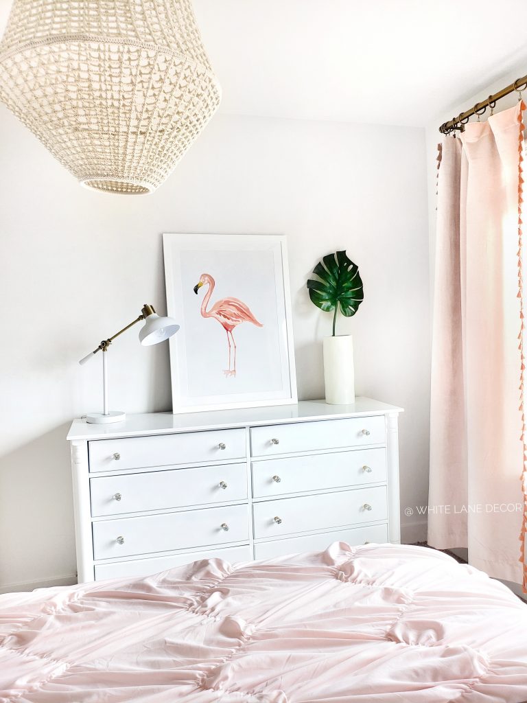 I have found a lot of affordable options and wanted to share some of them with you. I am thinking it will be a twin over a full-size bunk if we decided to go through with the room. She has the cutest flamingo theme going on right now. I am having a hard time deciding if that will stay for the shared room too.