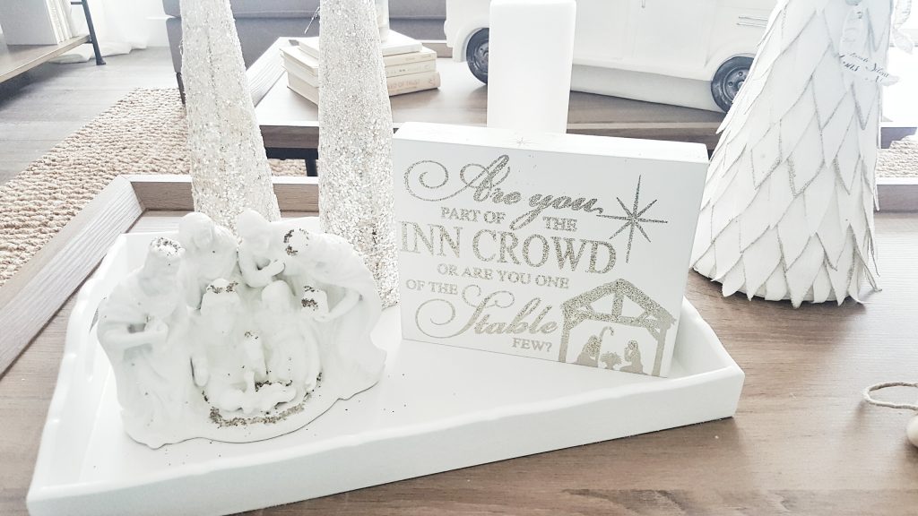My mom got me this sign from Desert Book. “Are you part of the Inn crowd or are you one of the stable few?” It is the perfect colors of white and champagne. I just love the meaning as well. These stockings I have had for a few years. I wish I would have got at least one more. When you find stockings you like, always buy extra. I have searched everywhere to find these again. I also can’t find new ones that I like enough to replace these. So, I just have an odd number for now.