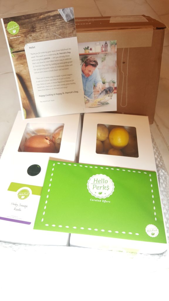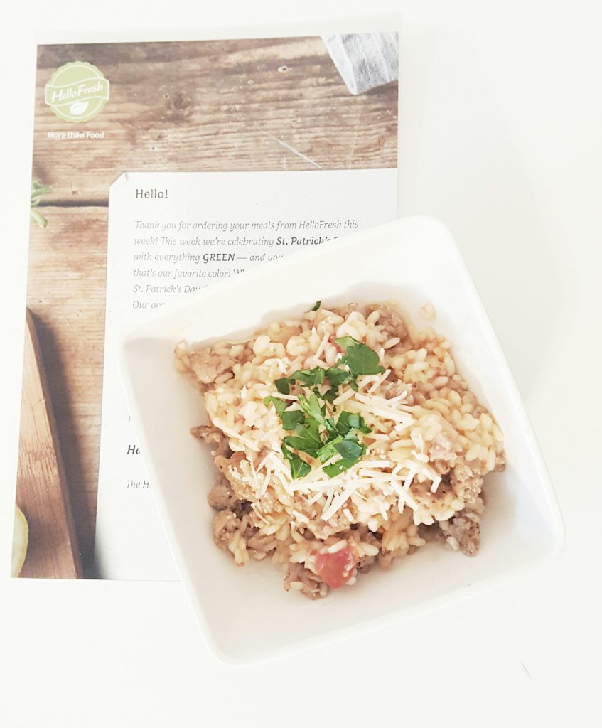 One night we had Herby Sausage Risotto. I did not think I would like this meal at all. In fact, I have never even made risotto. I just followed the easy step by step directions and it turned out amazing. The whole family loved it (even the picky eaters). The next night we made the Lemony Pan-Seared Chicken. Now I am not fan of pesto, so I was not sure how I would like this one either. There were pan- seared pine nuts and fresh peas (things I don’t normally add or think to get at the store). That is another reason Hello Fresh is so neat. You get a chance to make things you normally wouldn’t. You also feel good about the healthy ingredients. This chicken recipe also turned out amazing. Since it was close to St. Patricks Day they had this meal was themed with the green to go with the holiday. It was just fun!