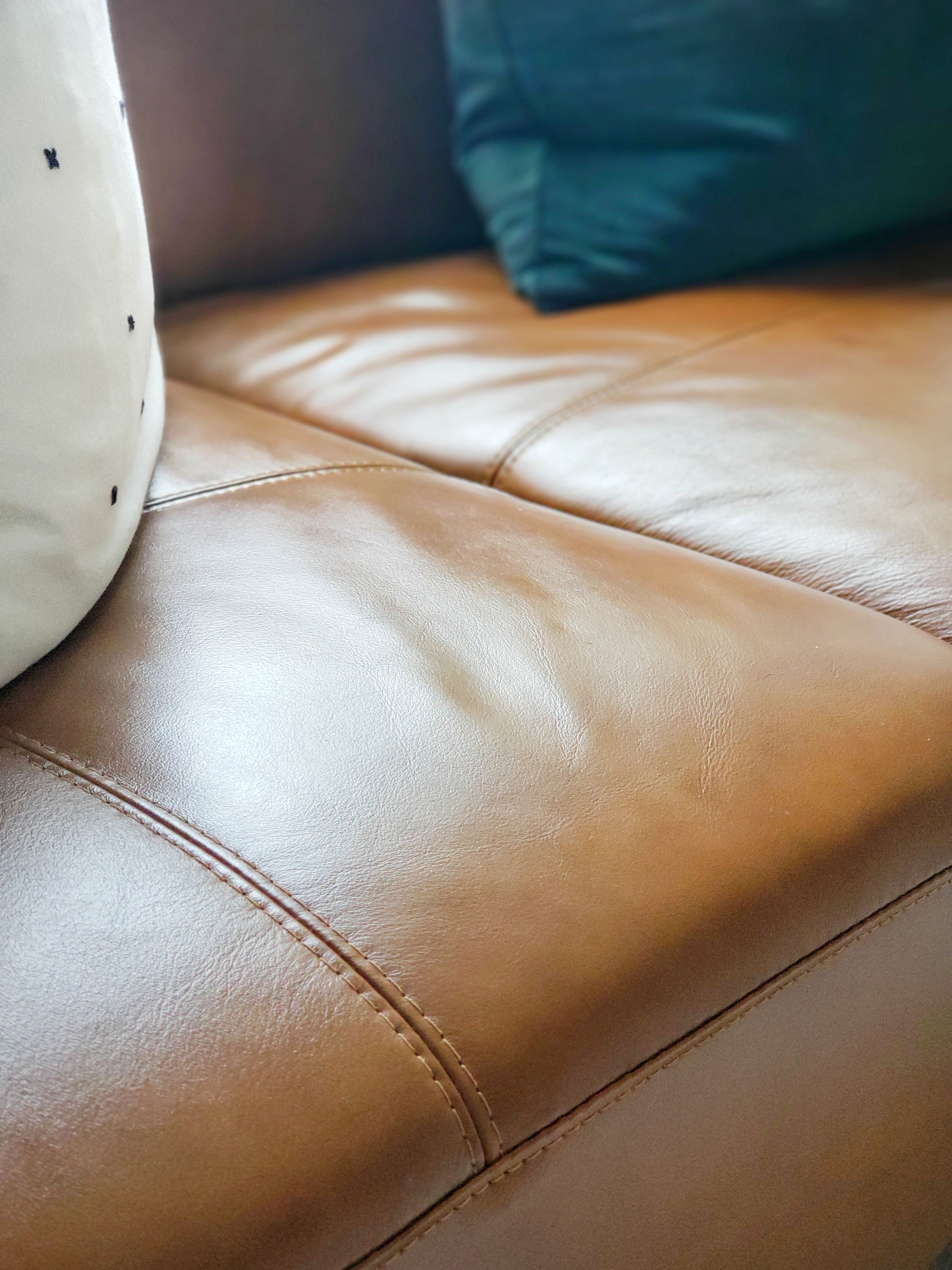 I have wanted a camel leather sofa for years. The leather is so durable and great for kids. Leather also typically comes with a hefty price tag. With all the projects going on in the house when we moved in, my camel leather sofa did not make budget cuts. I have been itching to update this living room. My designs all included a camel leather sofa. 😉 Well, as I started to source all my options, I discovered a hidden goldmine of affordability.