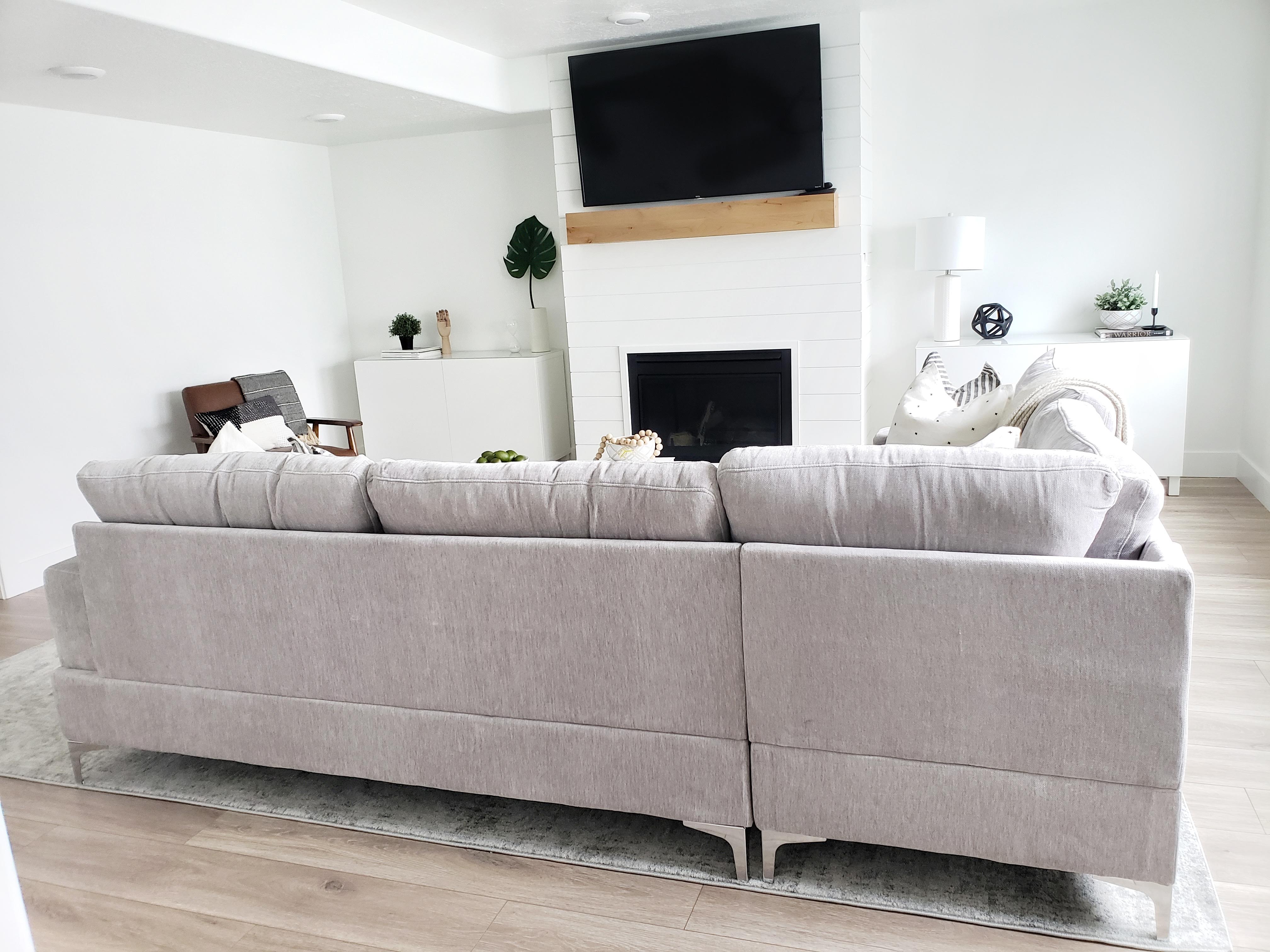 I am obsessed with my new sectional. The modern legs and clean lines have me all heart eyes. This sectional also comes in three other colors. It was so hard to choose! Now that this room is finished, I can’t wait to show you more reveals. Be sure to subscribe so you don’t miss any updates. I will be back soon to show you the basement kitchen. You can shop the links below for sources from this post.