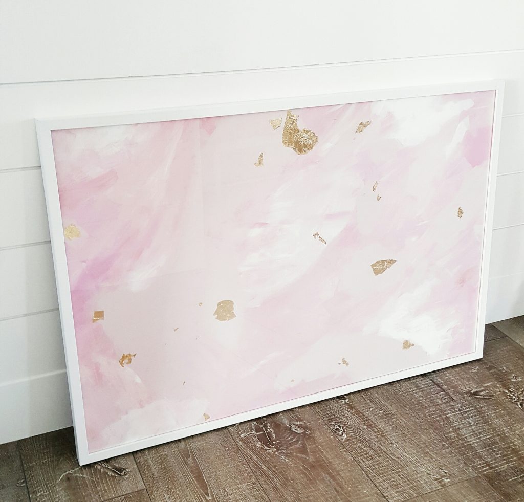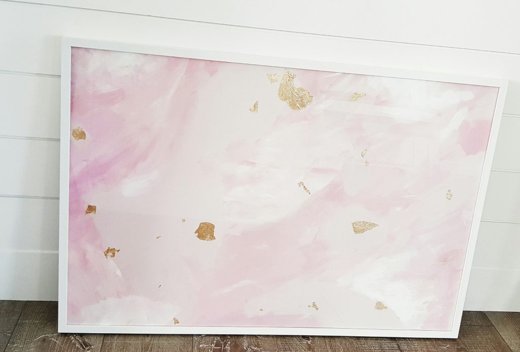 The pink rug was a Wal-Mart find. When it arrived I was so happy it was the right color pink to match everything else. The white fur rug came from Ross. I love the look of layered rugs. This soft fluffy one is like walking on marshmallows. Perfect for the nursery. I am sure you remember my DIY abstract art from a previous post. I wasn’t in love with it when I first got it hung above the crib. It is growing on me. I think I will keep it in here.