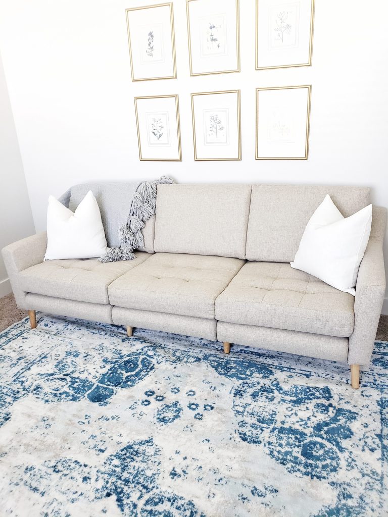 First of all, let me tell you how fast and easy the shipping process is with Burrow. Shipping is free (YAY!). I was able to bring in all the boxes and set up this sofa by MYSELF! That’s right friends. This super cool innovative designed sofa arrives in compact boxes. The sofa pieces fit together like an easy puzzle with no tools.