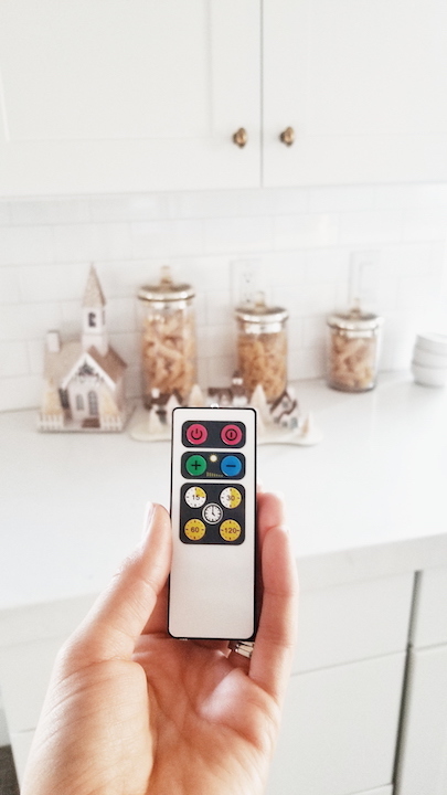 I have to say this was the easiest DIY upgrade I have done in a while. I just popped the batteries in and stuck them where I wanted. It is fun having the added ambiance in our kitchen with the ease of a remote. It’s the simple things in life. 🙂
