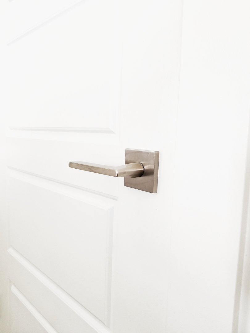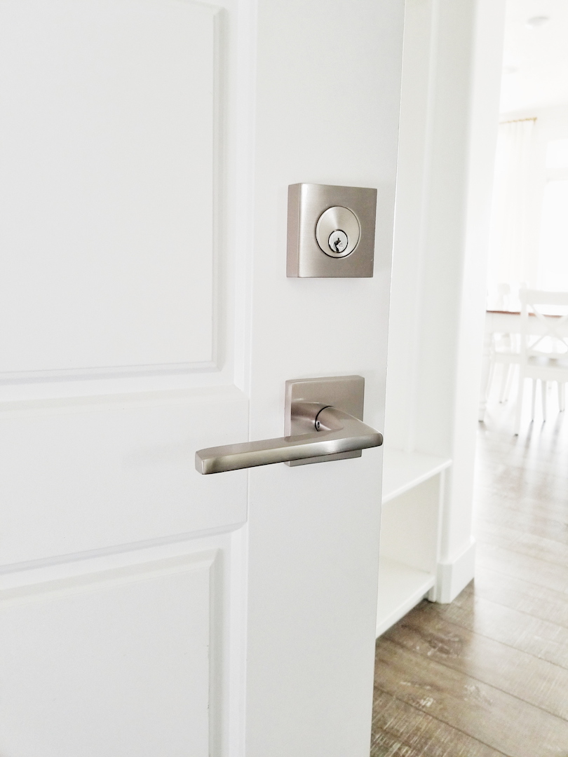 I probably shouldn’t tell you how bad our door locks were. The previous owners had removed them to install their security system and then put the original lock set back on. The front door deadbolt was hanging on by a screw that always would fall out. Not the safest setup for a lock. The knob was just basic brushed nickel that came standard on the house.