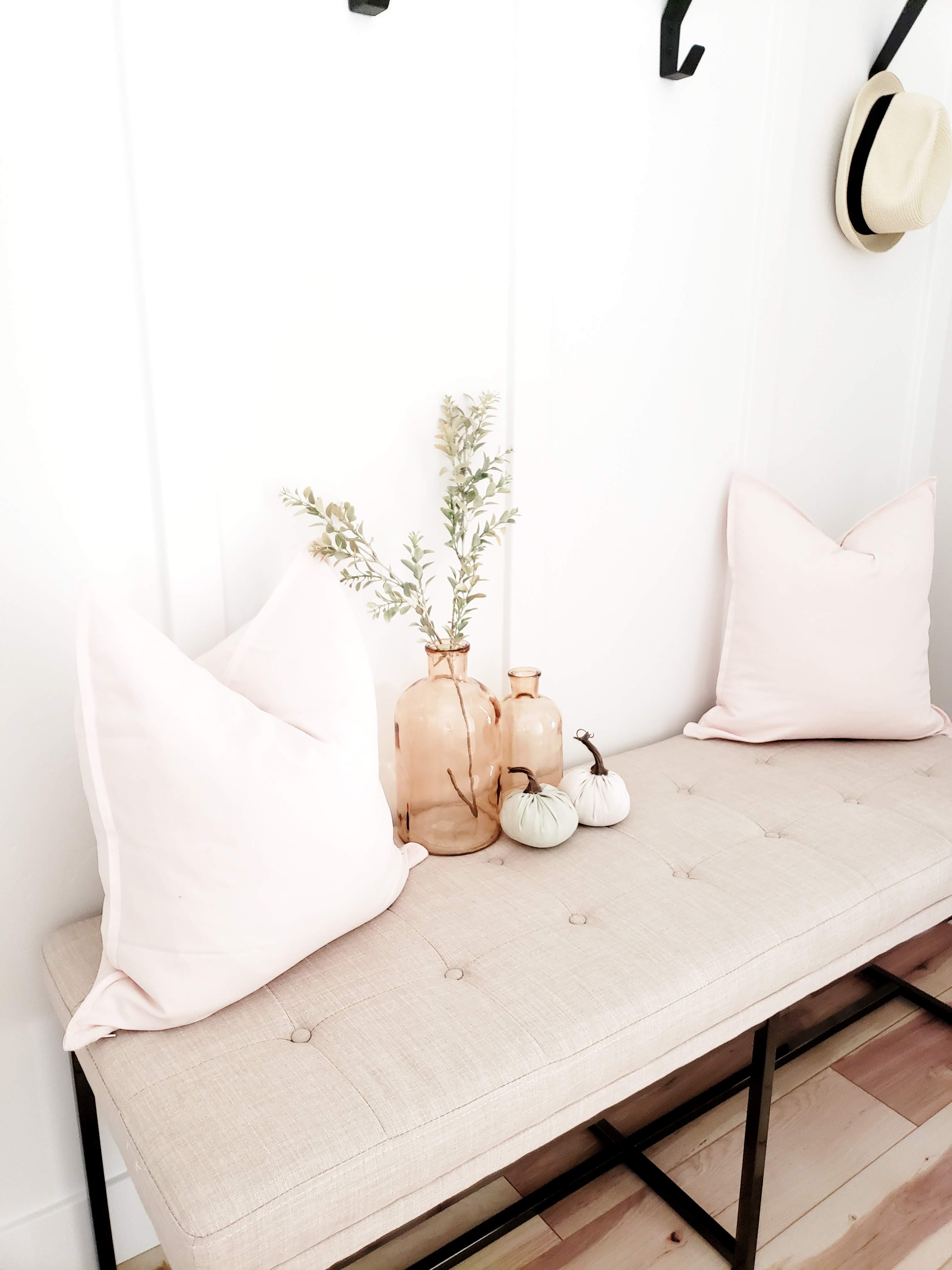 I decided to have a pink fall. I love the soft touches of pink with neutrals. Why not have that for fall too? The best part is that a lot of stores had their summer pink florals and decor on clearance. I am starting to see more and more pink creep into our home and don’t hate it. 🙂 Mr. Whitelane hasn’t complained yet either. So, as long as I keep it simple I think we are good.