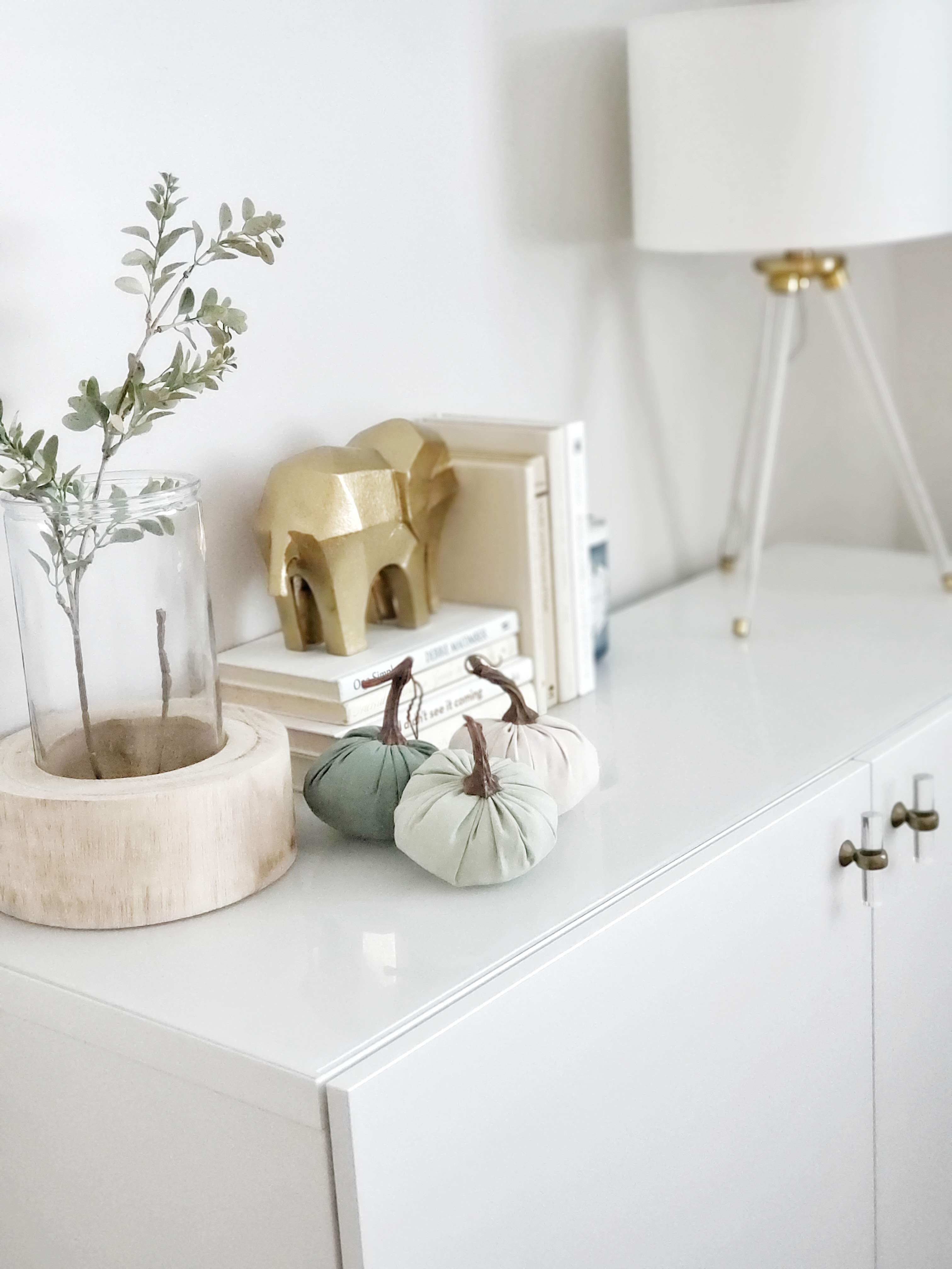 I wanted to keep it simple and clean. I think it is important to not feel like every corner of every room has to be decorated. I decided to sprinkle some of my green fabric pumpkins from last year throughout the living room and mudroom. I got them from the Target Dollar Spot and I am still loving them. I decided to take a spin on your typical fall colors. I love the orange, yellow, and brown tones of the traditional fall decor. However, I just didn’t feel like that was right for this home.