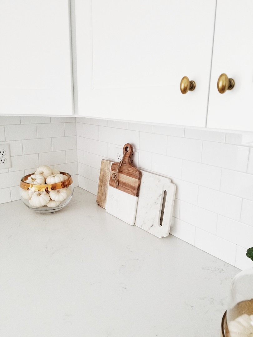 I also had to get a new runner that fit with my new changes. I am a neutral loving girl at heart. I have tried out many different options for this space but I always come back to my neutrals. This rug is so great because it has a rubber backing to help keep it in place. This Tillia marble cheeseboard is a must-have for countertops. The wood and marble together make such a beautiful statement. I filled in the rest of the counters with these awesome white canisters. They come in two sizes and I went with the ten-inch size. I even removed the lid to use one as a utensil holder. Finally, I found this wood vase set. I am obsessed with these vases. They can be used in so many applications for styling. A great staple to have around for any room.