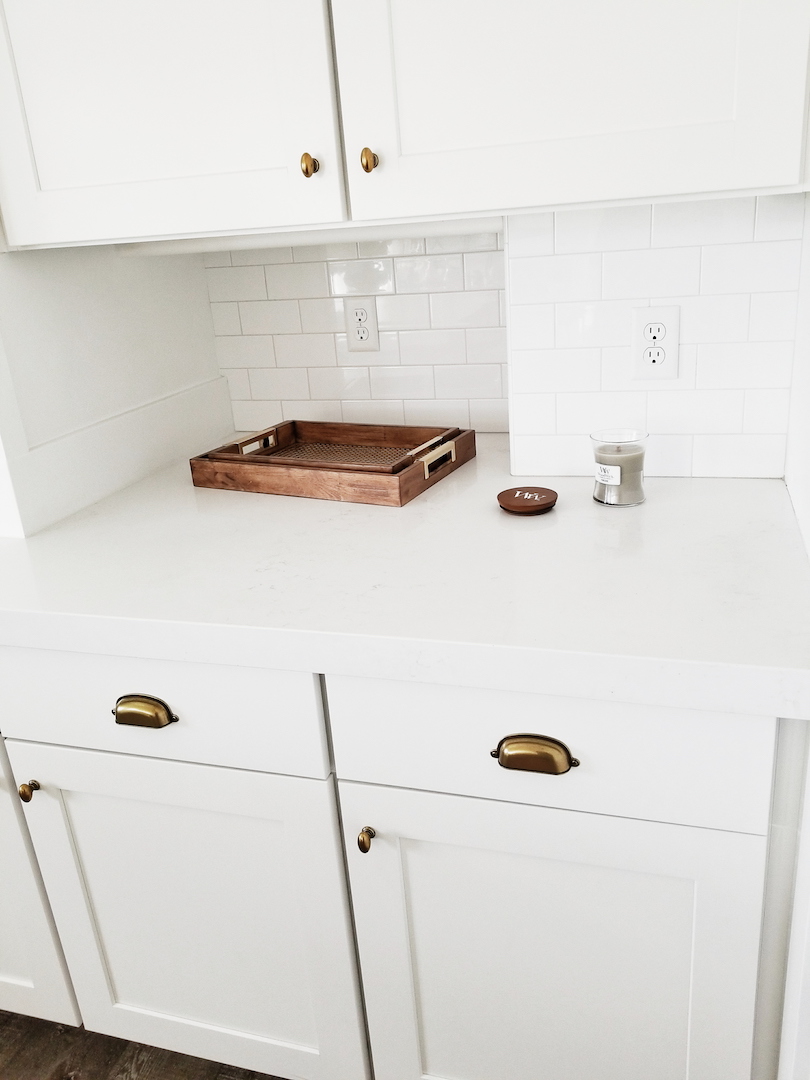 Today is the day I finally get to show you some updates we did to our kitchen. We have lived in this house for about nine months and we are constantly still making things feel like our style. If that makes any sense? Mr. Whitelane and I are always changing things and doing projects to make this home feel like it fits our family. That is part of the fun of buying a pre-existing house. The kitchen was one of the first projects we did. It went from dark to light and bright. Here is a look at the before from when we first bought the house.